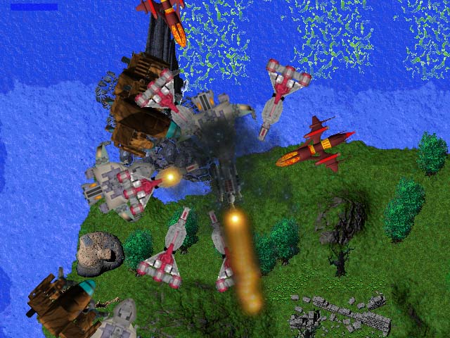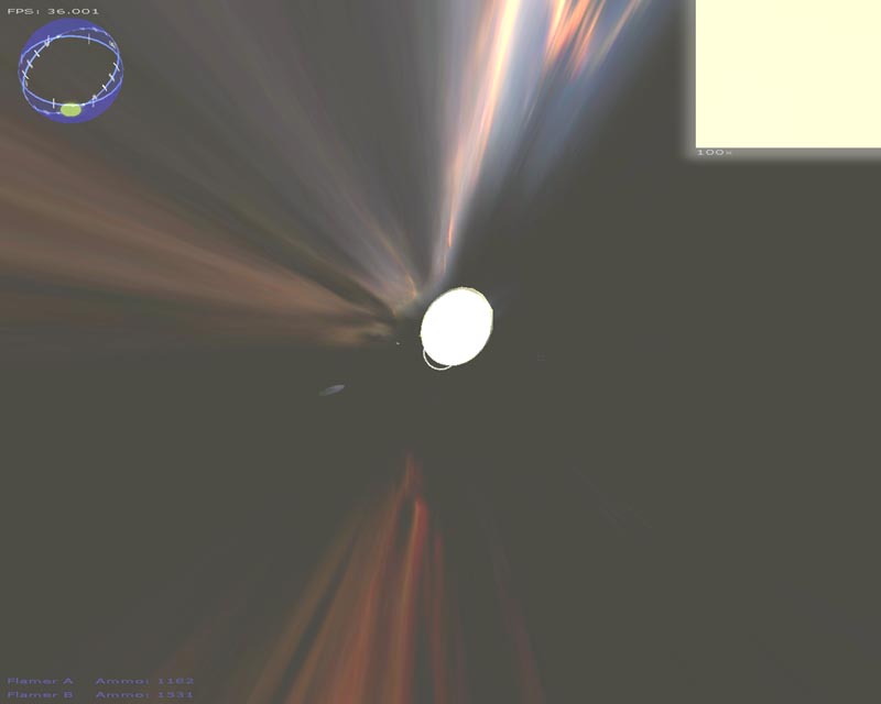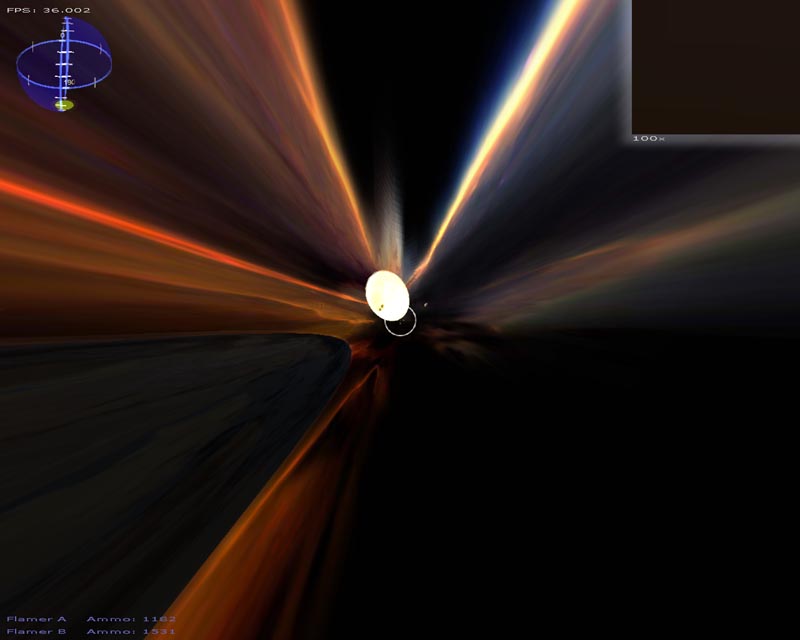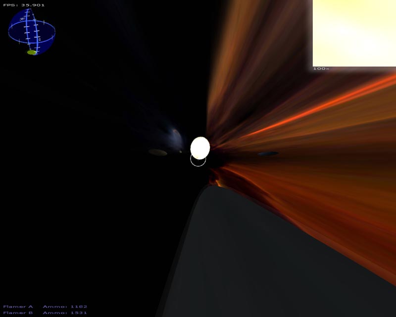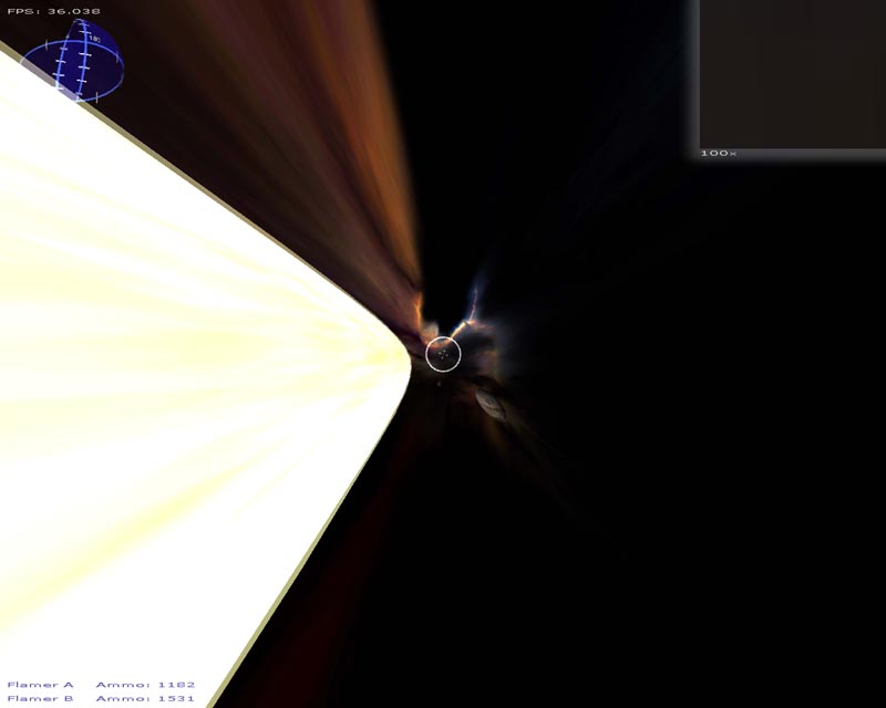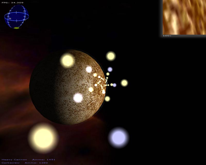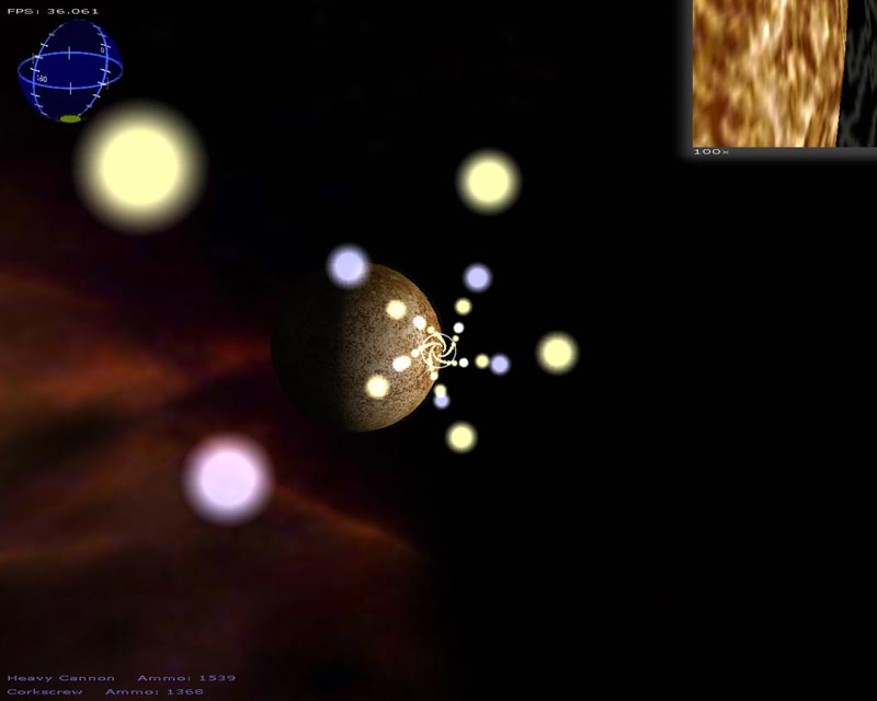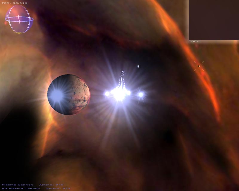 A lot of changes have been made this time around. Among the things I can still remember implementing (since last time), there's a particle engine, warp drive effect, planets, atmospheres, lighting, gravity (if you turn it on), several weapons, a sky sphere, 3ds file support, semi-scripted worlds, an analysis routine to help setup the game for your hardware, and probably a few other things I've forgotten about.