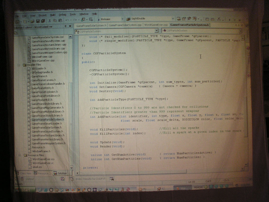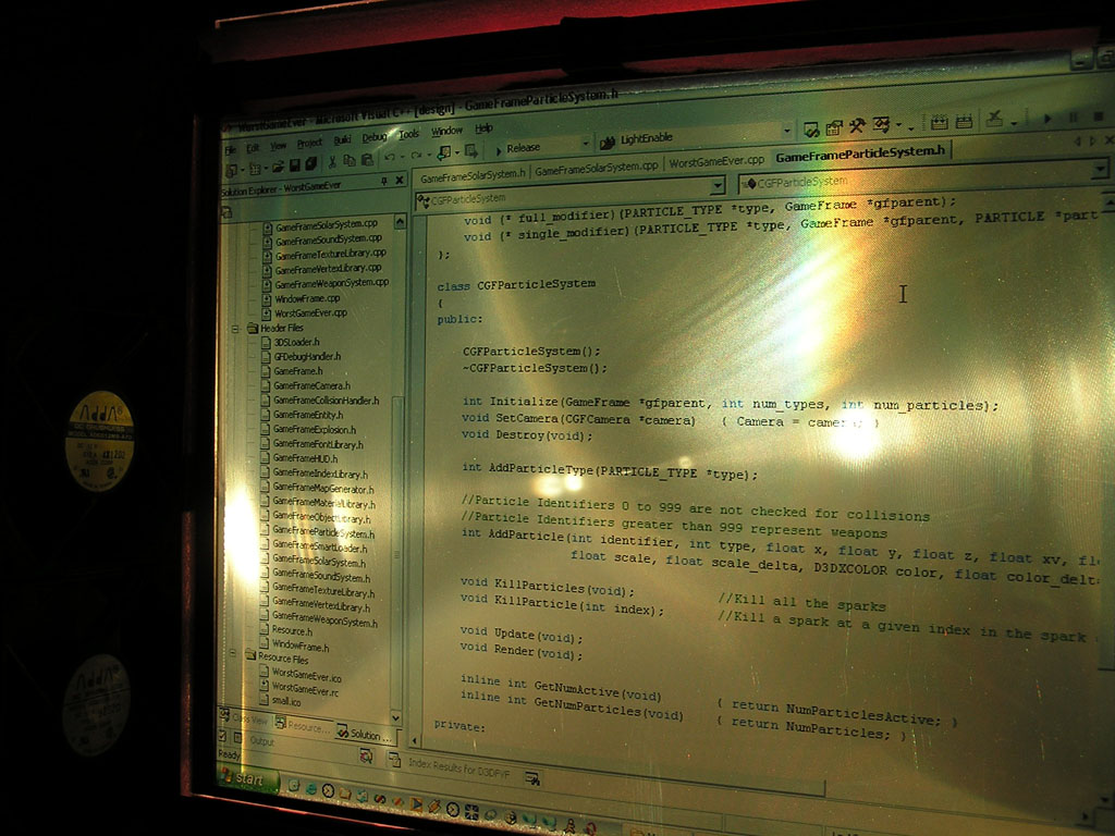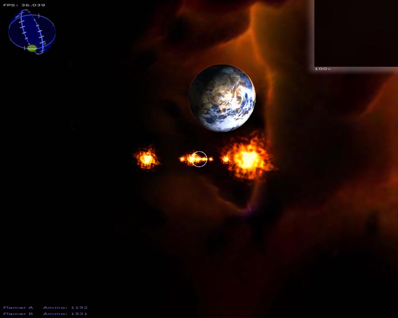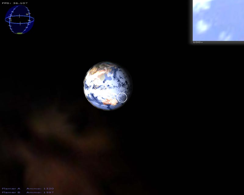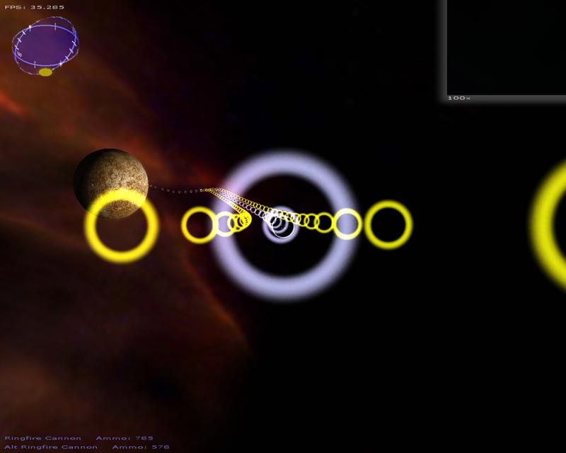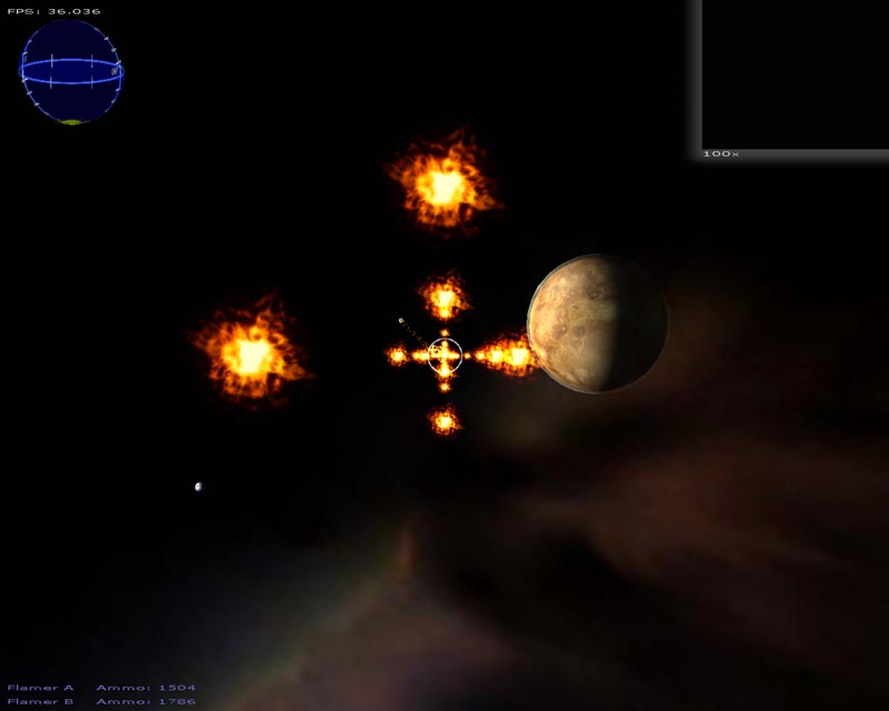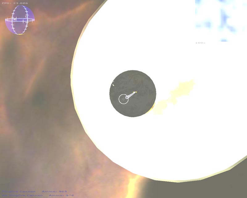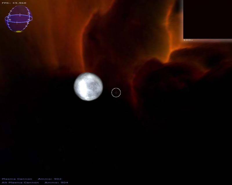 The game (which has turned into a space shooter) has 8 weapons (there will be at least 50 when I'm done). Planets are rendered with atmospheres and correct lighting etc. Gravity calculations are working out pretty well too. It still has a long ways to go but It's not nearly as crappy as it used to be. 3DS models now load correctly, you can alt-tab in and out of the game, there's sound, a pretty cool warp drive effect and a few other things.