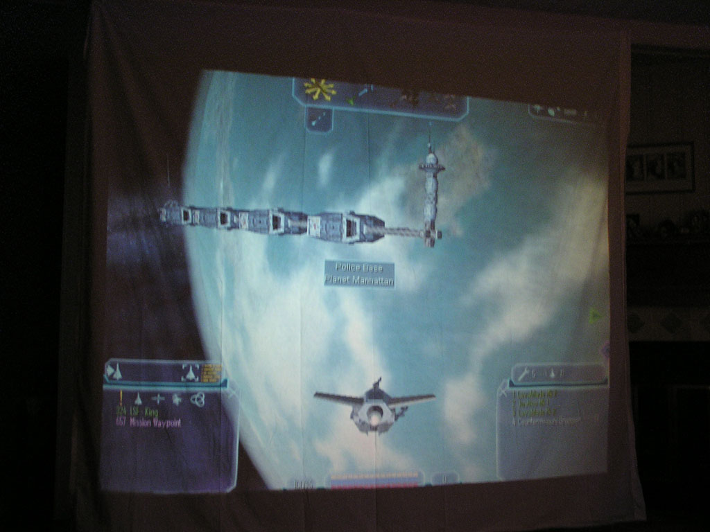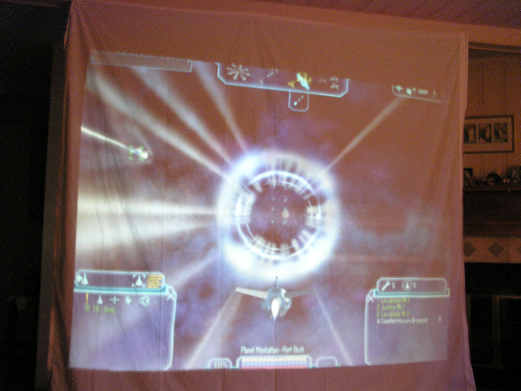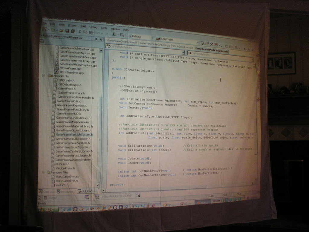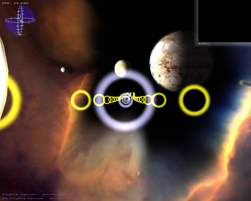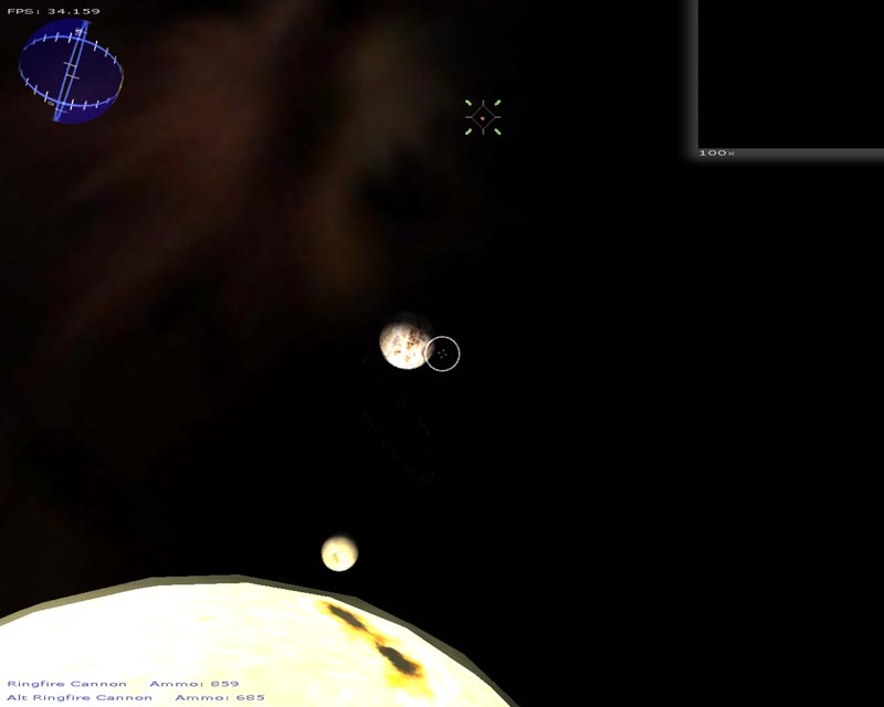 The game (which has turned into a space shooter) has 8 weapons (there will be at least 50 when I'm done). Planets are rendered with atmospheres and correct lighting etc. Gravity calculations are working out pretty well too. It still has a long ways to go but It's not nearly as crappy as it used to be. 3DS models now load correctly, you can alt-tab in and out of the game, there's sound, a pretty cool warp drive effect and a few other things.