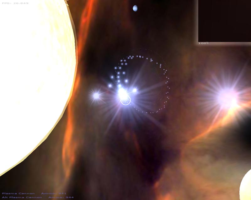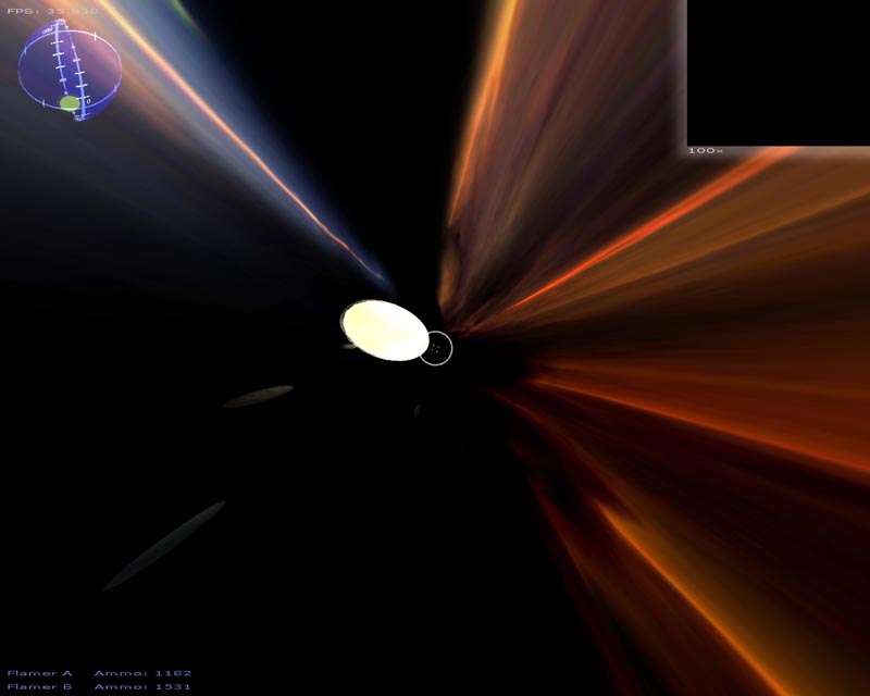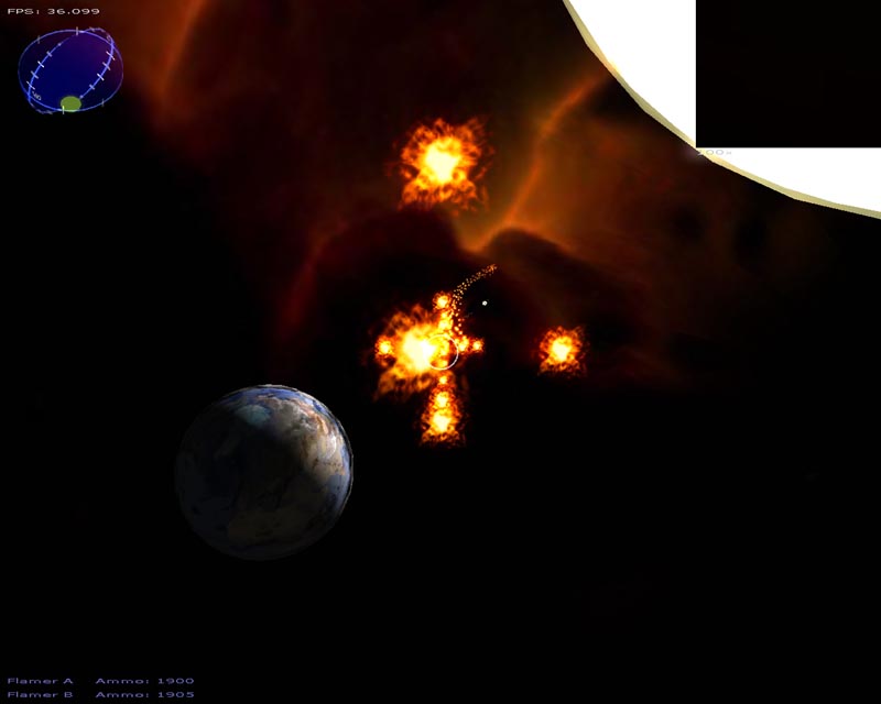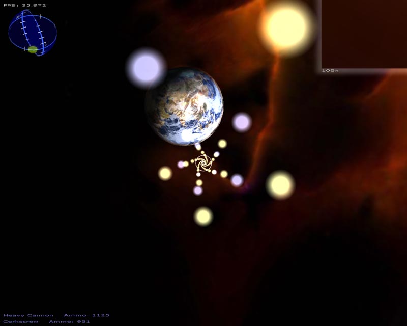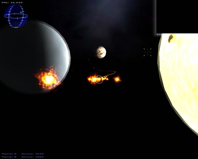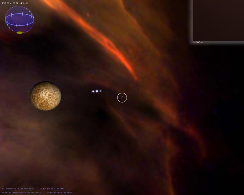A lot of changes have been made this time around. Among the things I can still remember implementing (since last time), there's a particle engine, warp drive effect, planets, atmospheres, lighting, gravity (if you turn it on), several weapons, a sky sphere, 3ds file support, semi-scripted worlds, an analysis routine to help setup the game for your hardware, and probably a few other things I've forgotten about.